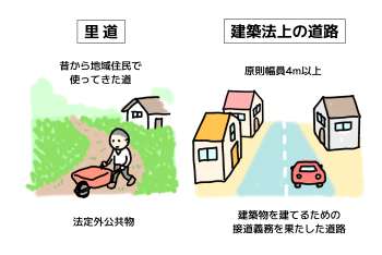 里道は建築基準法上の道路ではなく、道路法や河川法が適用されない「法定外公共物」です。