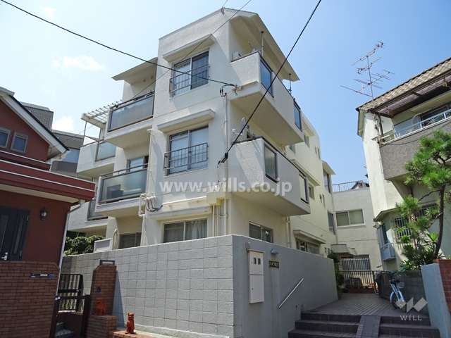 『ハイツ森北』はJR「甲南山手駅」から北西方向へ徒歩9分、『森北町4丁目』にあるマンション。JR東海道本線、阪急神戸線の2沿線が利用可能で、阪急「岡本駅」へは徒歩15分の距離。周辺は第1種低層住居専用地域内の高台の静かな住宅地。駅からは一部坂道。中学校までは距離がありますが、小学校、スーパー、公園などが徒歩10分以内の場所に揃っています。建物は3階建てで、エレベーターは無しです。
