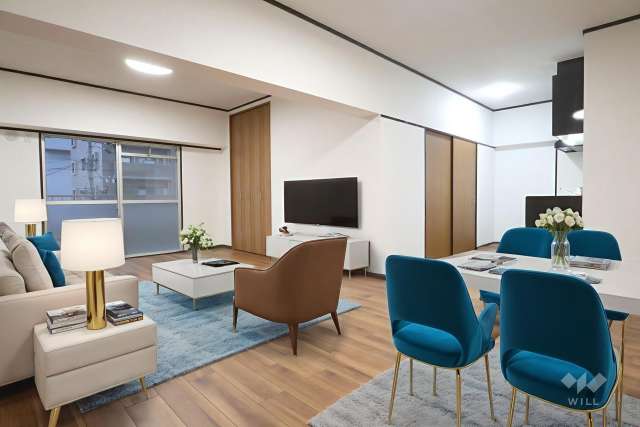 クロス張替え、フローリング張替え(廊下・リビング・洋室)、フロアタイル張替え(洗面室)、畳表替え、襖張替え、建具交換(リビング)、キッチン交換、洗面台交換、ユニットバス交換、シャワートイレ交換、照明器具設置、塗装工事(天井・木部)、ハウスクリーニングなど。