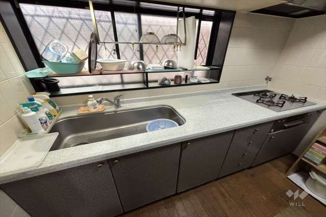 敷地面積は約42坪。北西付け道路。南側は隣地より一段高く採光・通風良好です。接道間口約11.6mの整形地。車2台分の駐車スペースがあります(車種による)。南側に庭付き。建物は1999年1月築の木造2階建て。イワクラゴールデンホーム施工。間取りは延床面積110.54平米の4LDK。水回り設備が集約した家事動線に優れたプラン。キッチンは生活感が出にくく、料理に集中しやすい独立型で、LDと廊下の2方向から出入りが出来る2WAY動線です。LDと和室が続き間で、シーンに合わせて空間をフレキシブルに使用可能。上部が吹抜けの玄関は開放感があります。付帯設備はTV付きインターホン、床下収納庫など…。現況は居住中です。