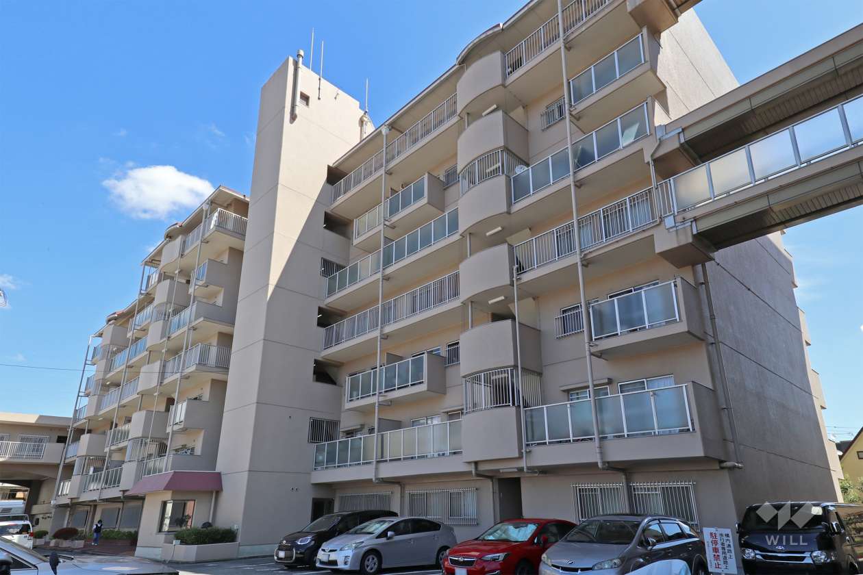 『南宝塚ビューハイツ』は阪急「小林駅」から南東へ徒歩5分、『中野町』にあるマンションです。地勢は平坦、敷地南側は田畑も多い、のどかな雰囲気の住宅地。北側は商業地で、買物施設が近隣に充実しています。建物はスキップフロア構造で、エレベーター停止階は1・4・7階。北棟と南棟の全2棟で構成されており、棟と棟は渡り廊下で結ばれており、棟の北側には店舗が入っています。なおペット可のマンションです(2匹・諸条件あり)。