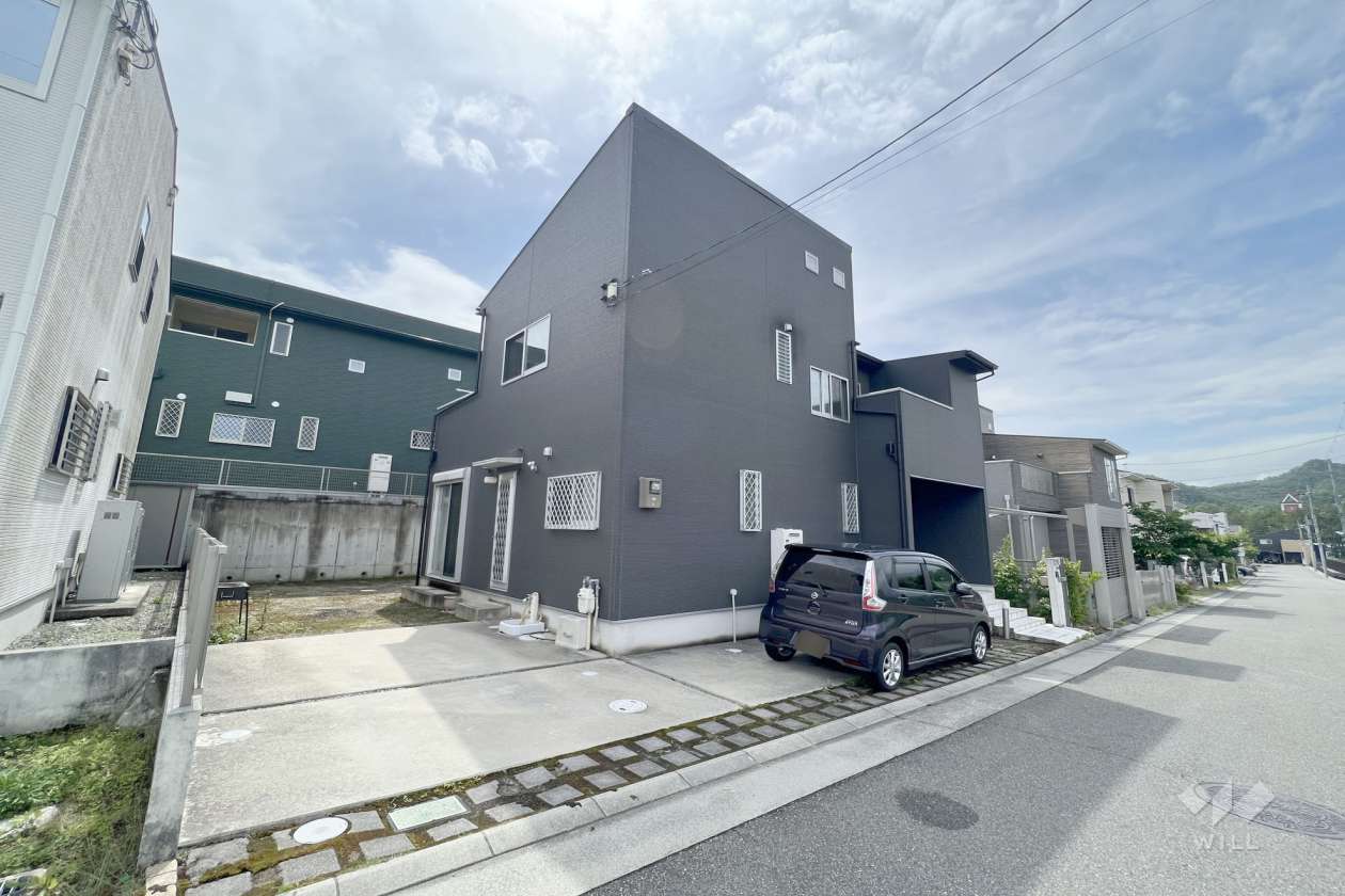 敷地面積は約55坪。北東付け道路。車2台分の駐車スペース(車種による)と広々とした庭スペースがあります。建物は2014年1月築の木造2階建て。前面道路の前が開けており、緑の山々が望めます。間取りは延床面積106.8平米の4LDK。1階にLDK約17.8帖と水回りが配置されたプラン。LDKと洋室約4.5帖が続き間で、一続きのスペースとしても利用できます。リビング階段のため、2階の個室へはLDKを通ってアクセスする造り。各個室の収納のほか、ウォークインクロゼットやシューズクロゼットなど、収納豊富。バルコニーは2ヶ所に設置されています。付帯設備は食器洗浄機、浄水器、IHクッキングヒーター、洗浄便座、浴室乾燥機、追焚機能、床暖房、TV付きインターホン、床下収納庫、電動シャッター雨戸など…。現況は居住中です。
