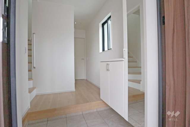 敷地面積は約29坪。全2区画の分譲地のうちの1区画。西付け道路。車2台分の駐車スペースがあります(車種による)。間取りは延床面積93.78平米の4LDK。現況は完成済みのため、室内の見学ができます。