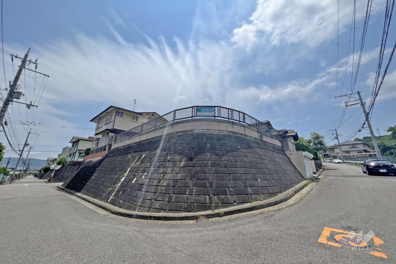 周辺は第一種低層住居専用地域に指定された一部店舗や事務所、主に一戸建てが立ち並ぶ住宅地です。周囲を山林に囲まれた自然豊かな住環境。近い場所に『藤ケ丘第8公園』『藤ケ丘第二公園』などの小さな公園が点在し、南へ歩くと気軽に山歩きが楽しめる『北雲雀きずきの森』があります。地勢は高台で、標高は約110m。昭和47年からフジタ工業株式会社により分譲が開始された川西ニュータウン藤ヶ丘のタウン内にあり、道幅6m前後の道路が多く、街路は整っています。生け垣や庭木のある家が多く、町中も緑豊か。高速道路のインターチェンジまではやや距離があります。