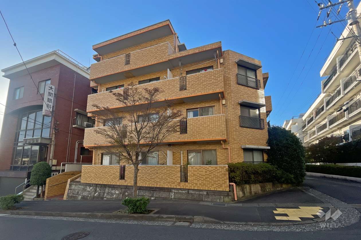 『マイキャッスル宮崎台』は、東急田園都市線「宮崎台駅」から徒歩8分、『川崎市宮前区宮崎1丁目』にある総戸数18戸の小規模マンションです。周辺は第一種住居地域内の店舗や事務所が混在する住宅地。敷地は所有権。建物はRC造4階建てで、施工は山田建設です。