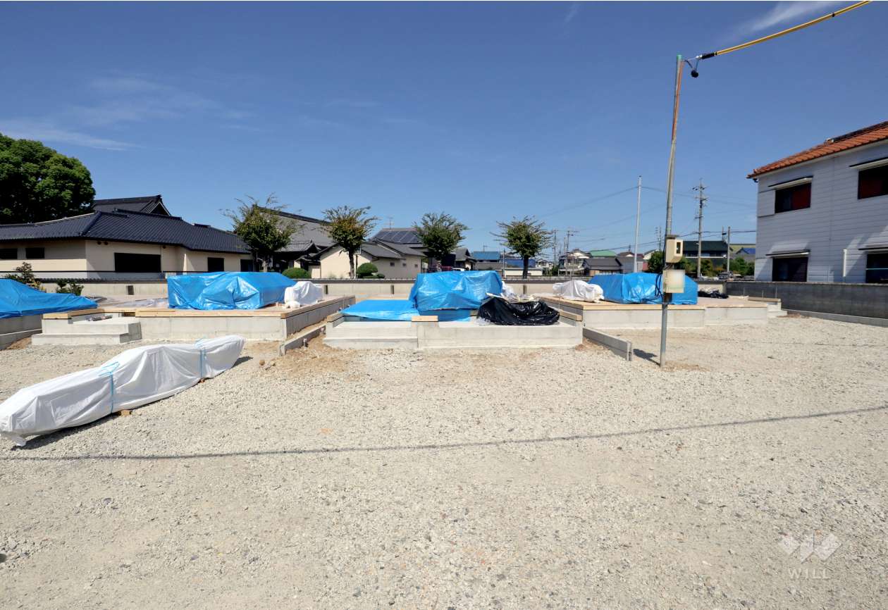 敷地面積は約42坪(路地状部分約7.0平米含む。別途、約2.22平米の私道負担有り)。全4区画の分譲地のうちの1区画。東付け道路。駐車スペースあり(車種による)。間取りは延床面積99.36平米の3LDK。付帯設備は浄水器、洗浄便座、浴室乾燥機、ペアガラス、宅配ボックス、TV付きインターホン、床下収納庫、24時間換気システムなど…。現況は未完成です。浄化槽利用。詳細についてはお問合せください。