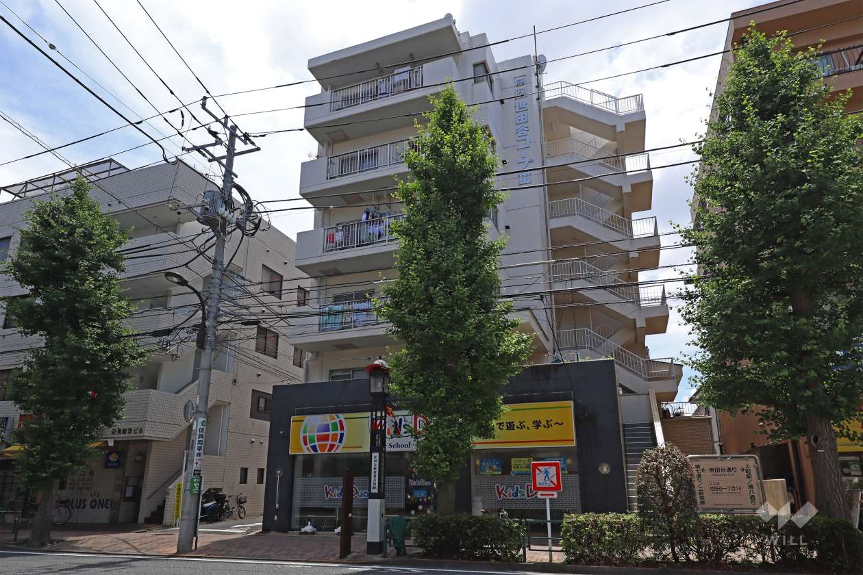 『藤和世田谷コープ3』は、東急世田谷線「世田谷駅」から南東方向へ徒歩4分、『世田谷区世田谷1丁目』にある総戸数15戸の小規模マンションです。複数駅が利用可能で、東急世田谷線「松陰神社前駅」からは徒歩6分の距離にあります。周辺は近隣商業地域内の一部店舗や事務所、主に一戸建てと集合住宅が立ち並ぶ住宅地です。敷地北側を都道3号世田谷町田線(世田谷通り)が走っており、近くに重要文化財内の『世田谷代官屋敷』があります。地勢は平坦(台地)で、標高は約40m。道幅4m前後の道路が多く、街路は入り組んでいます。生け垣や庭木のある邸宅が点在し、町中の緑はやや多め。約3kmの距離に東名高速道路の東京インターチェンジがあります。東急世田谷線「世田谷駅」からの道のりは平坦。洪水浸水想定区域内にあります。敷地は所有権。建物はRC造6階建てで、棟内に店舗部分有り。施工は日産建設。敷地は北東角地です。なおペットの飼育は不可です。