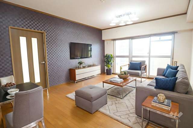 この物件は上層階の9階部分、北西角部屋。採光・通風良好です。間取りは専有面積83.13平米の3LDK。家族が集まりやすいセンターリビングのプラン。キッチンは生活感が伝わりにくい独立型です。窓のある広々とした玄関ホールは、多目的に使用可能。バルコニー面積は9.64平米。現況は空き部屋です。