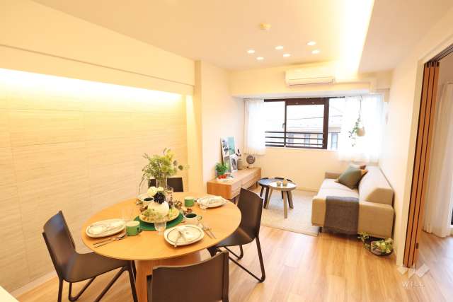 給湯器交換、システムキッチン交換、ユニットバス交換、洗面化粧台交換、トイレ交換、全室クロス張替、全室フローリング張替、全室建具交換、フロアタイル張替、配管部分更新、全室照明設置、ハウスクリーニング