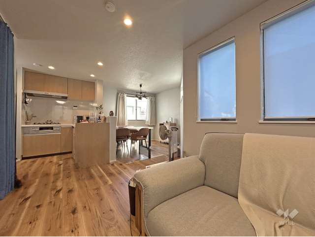 敷地面積は約17坪(別途、約10.13平米の私道負担有り)。東付け道路。車1台分の駐車スペースがあります(車種による)。建物は2025年2月築の木造3階建て。間取りは延床面積83.09平米の2SLDK。周囲からの視線が気になりにくい2階リビングのプラン。キッチン以外の水回りは1階にあります。キッチンはL字型タイプ。リビングイン階段で、3階の個室へはLDKを通ってアクセスするため、家族が顔を合わせる機会増えそう。洋室約6.2帖にウォークインクロゼットが設置されています。付帯設備は食器洗浄機、浄水器、洗浄便座、シャンプードレッサー、浴室乾燥機、追焚機能、床暖房、ペアガラス、TV付きインターホンなど…。現況は居住中です。
