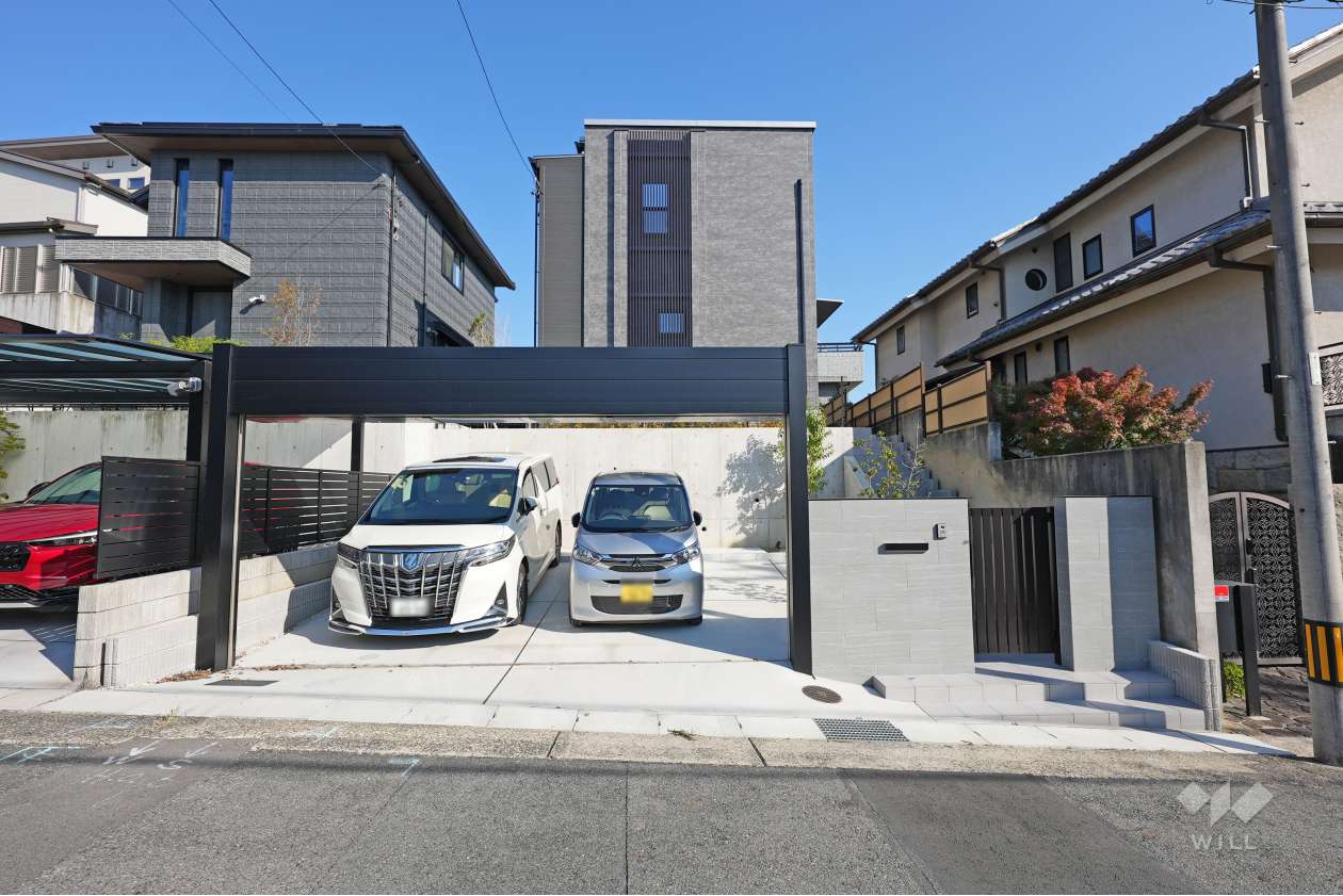 敷地面積は約55坪。西付け道路。車2台分の駐車スペースがあります(並列駐車可、車種による)。シャッター付きです。建物は2024年12月築の木造2階建て。ハウスメーカー施工。間取りは延床面積109.30平米の4LDK。1階にLDKとサニタリー、2階に個室が集約された、各階で用途が分かれているプラン。リビングイン階段で、個室にはLDKを通ってアクセスするため、家族のコミュニケーションの機会が増えます。ウォークインクロゼットやシューズインクロゼットをはじめ、各所に収納が設けられています。付帯設備は食器洗浄機、浄水器、洗浄便座、シャンプードレッサー、浴室乾燥機、追焚機能、ペアガラス、TV付きインターホンなど…。現況は空き家です。