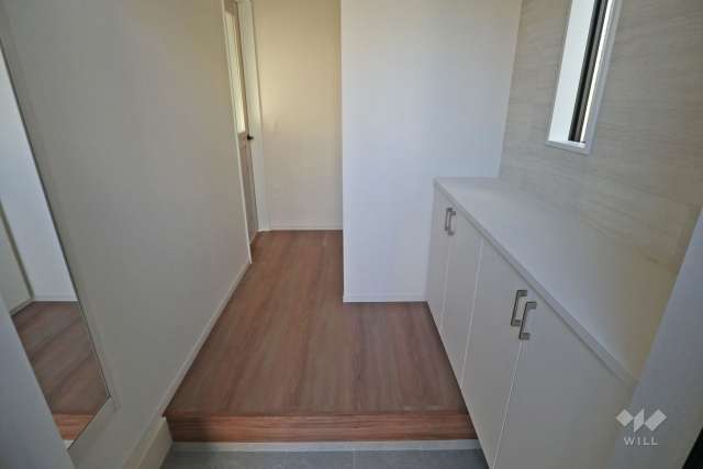 敷地面積は約48坪。全4区画の分譲地のうちの1区画。敷地の東と南が接道し、採光・通風良好。車2台分の駐車スペースがあります(車種による)。間取りは延床面積105.17平米の4LDK。付帯設備は洗浄便座、シャンプードレッサー、浴室乾燥機、追焚機能、TV付きインターホン、床下収納庫、24時間換気システムなど…。現況は完成済みのため、室内の見学ができます。