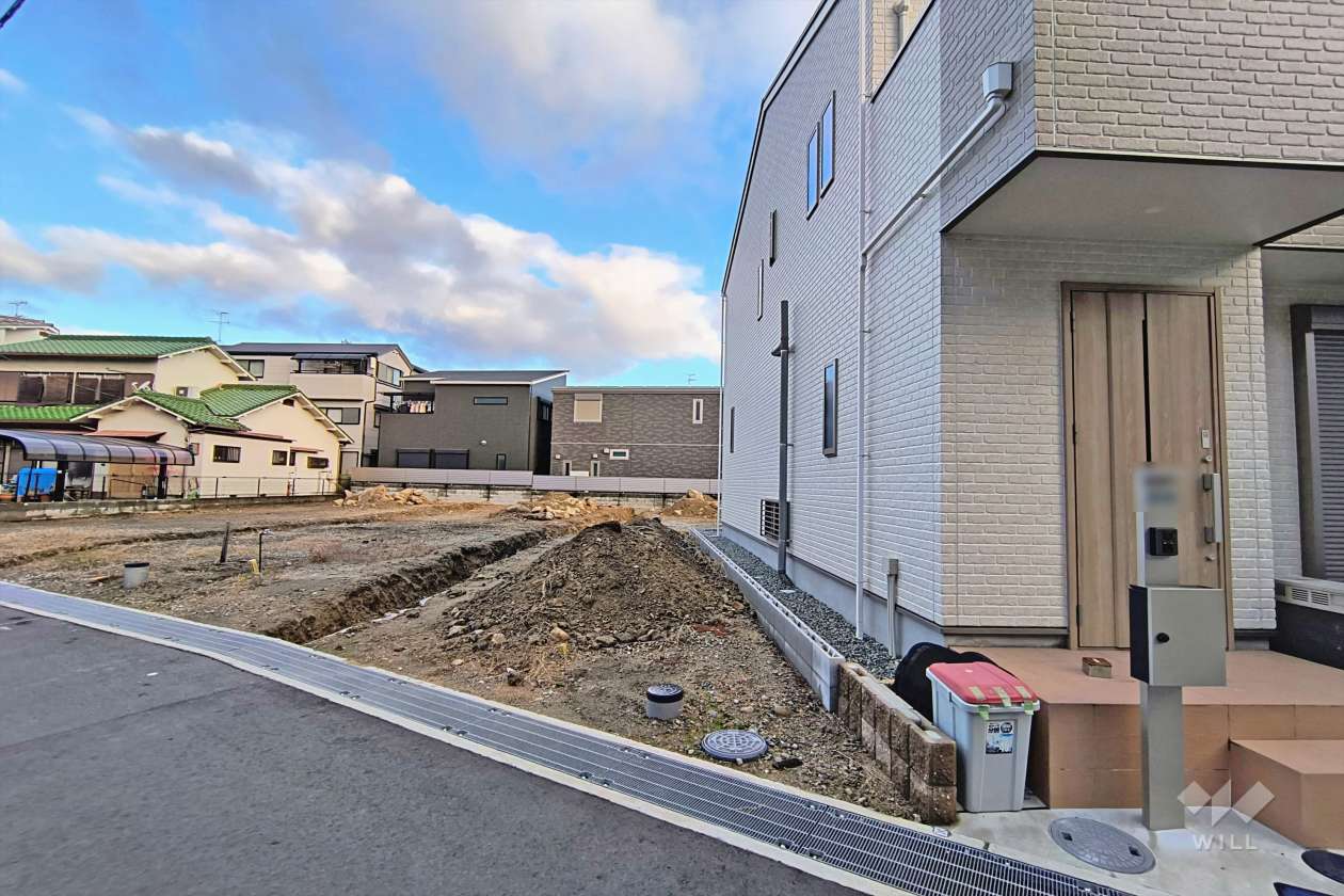 敷地面積は約34坪。全4区画の分譲地のうちの1区画。南付け道路で採光良好。車2台分の駐車スペースがあります(車種による)。間取りは延床面積91.12平米の2SLDK。付帯設備は浄水器、シャンプードレッサー、浴室乾燥機、追焚機能、TV付きインターホン、床下収納庫、24時間換気システムなど…。現況は未完成です。
