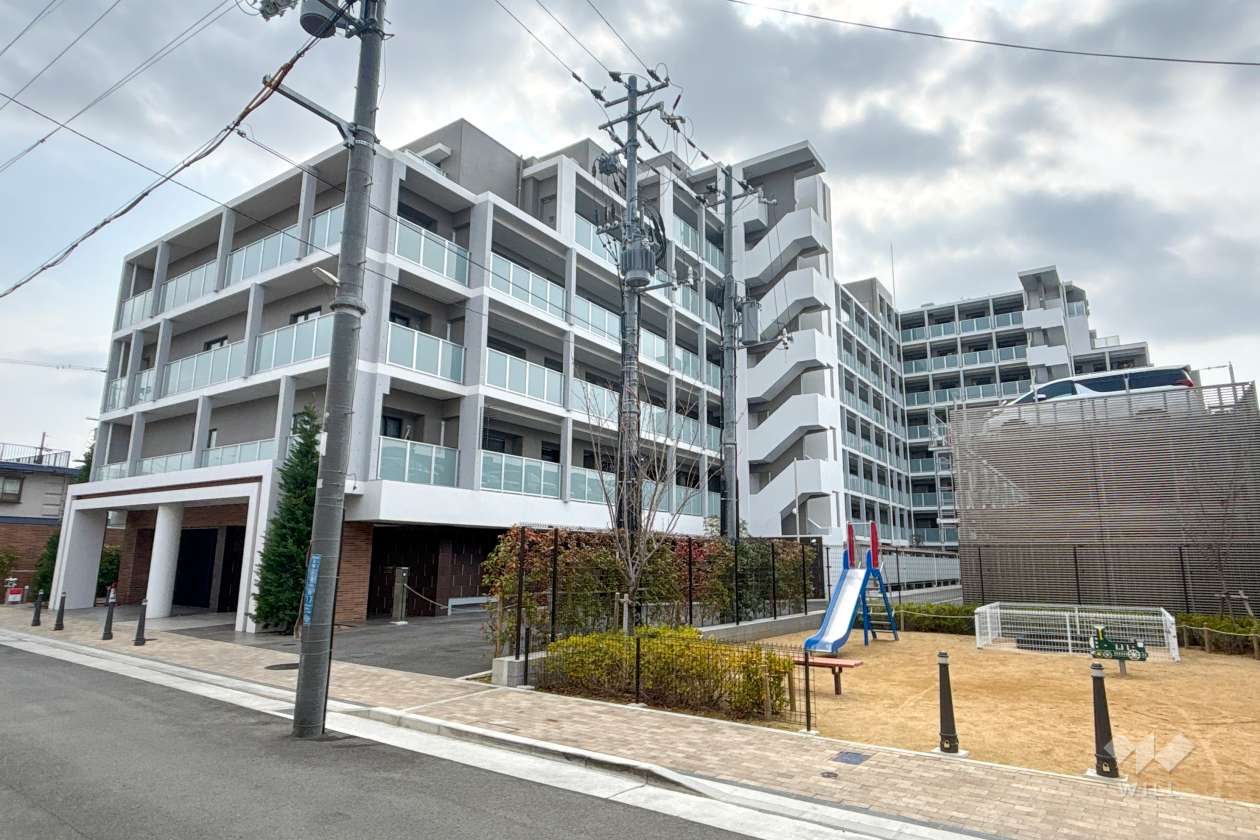 『ワコーレ武庫之荘ノースグラン』は、阪急神戸線「武庫之荘駅」から徒歩11分、『尼崎市武庫之荘東2丁目』にある総戸数84戸の中規模マンションです。周辺は第一種中高層住居専用地域、第二種中高層住居専用地域、第一種住居地域内の一部店舗や事務所、主に集合住宅と一戸建てが立ち並ぶ住宅地です。東側を道意線、北側を県道606号西宮豊中線が走っています。田畑が点在し、のどかな雰囲気。この辺りは鎌倉時代から戦国時代にかけて武庫荘と呼ばれる荘園だった場所。近くに戦国時代に築城された『富松城跡』があり、今は土塁と堀の跡が一部見られます。地勢は平坦で、標高は約5m。道幅4m前後の道路が多く、街路は入り組んでいます。生け垣や庭木のある家はあまり見られず、町中の緑は少なめ。約2.5kmの距離に名神高速道路の尼崎インターチェンジがあります。敷地は所有権。建物はRC造8階建てで、施工は株式会社岡工務店です。エントランスに宅配ボックス付き。敷地内駐車場は43台(戸数に対する割合50%)です。