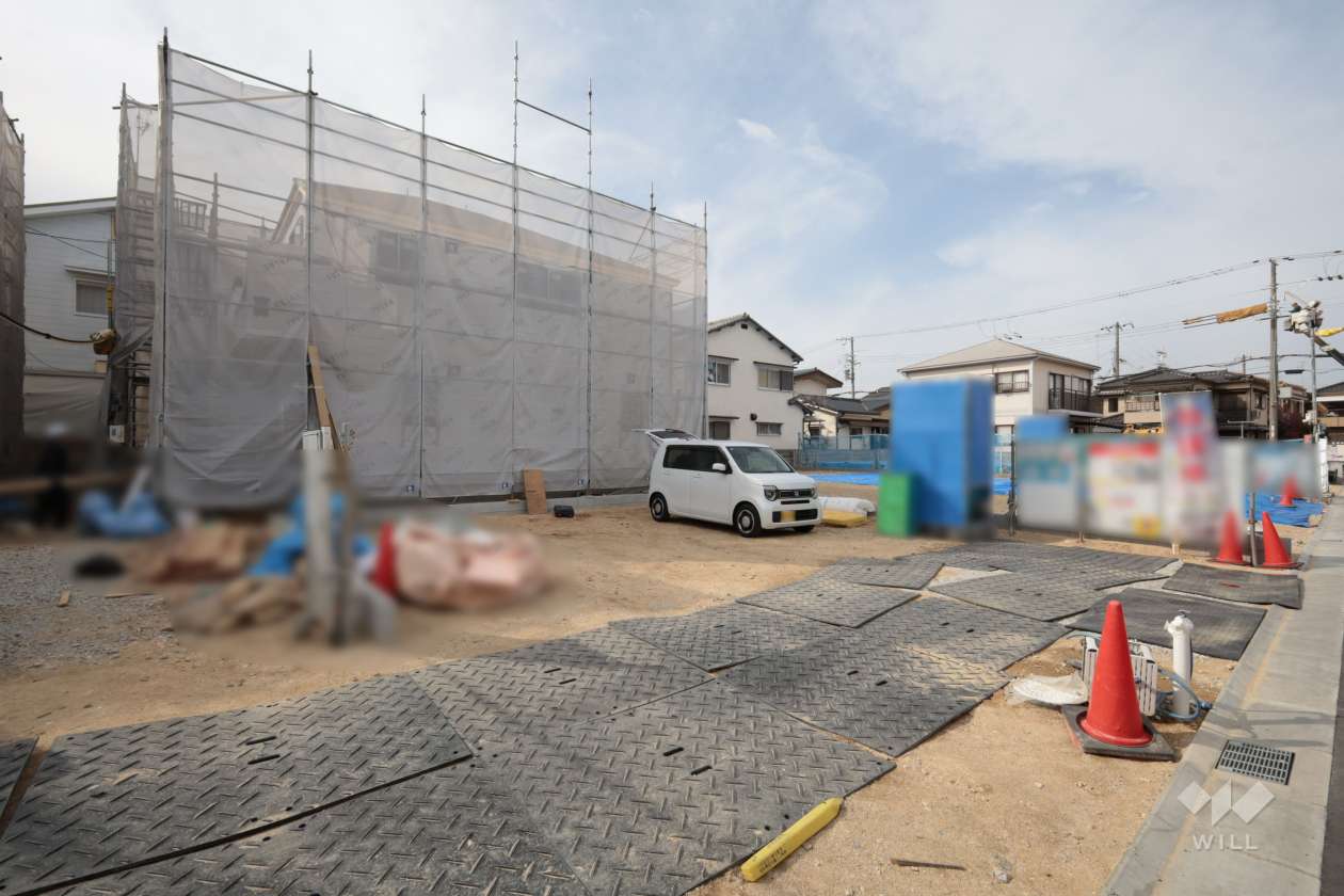 敷地面積は約34坪。全4区画の分譲地のうちの1区画。東付け道路。車1台分の駐車スペースがあります(車種による)。間取りは延床面積98.74平米の4LDK。現況は未完成です。