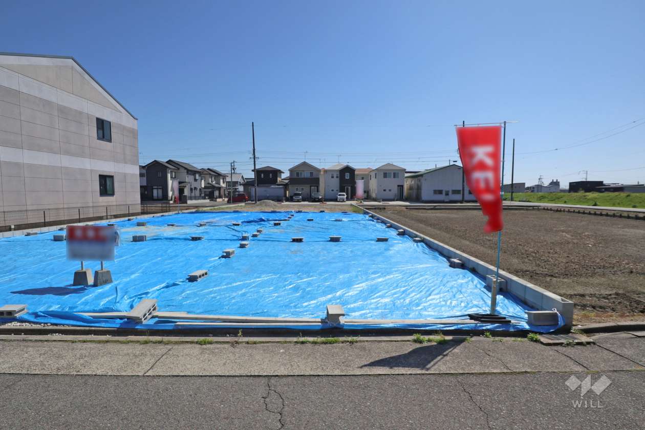 敷地面積は約49坪。全2区画の分譲地のうちの1区画。北付け道路。現況は更地のため、すぐに建築に取り掛かることができます。