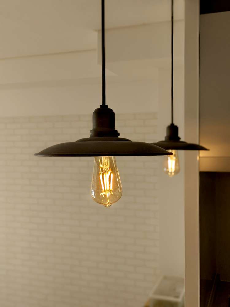 ペンダントライトのブラックが白基調のお部屋の中で良いアクセントになります。